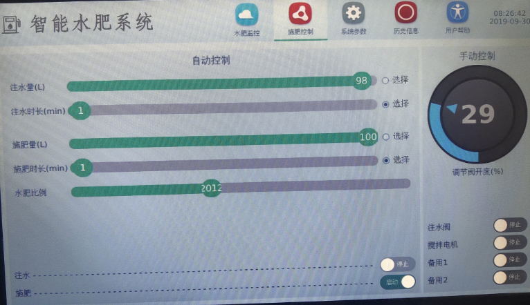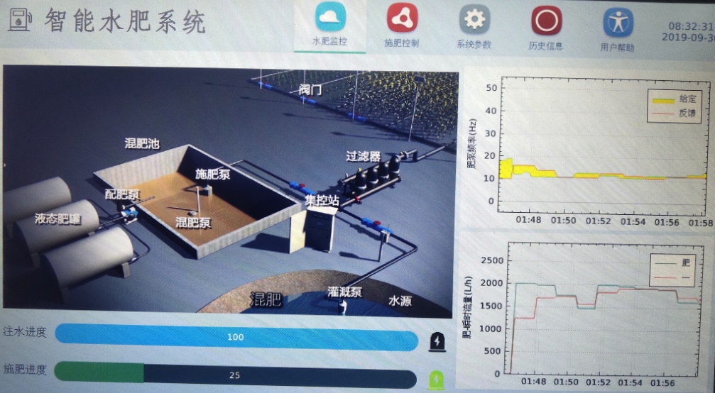 項目內容:系統包括智能水肥一體機、自動反沖洗砂石過濾器、自動反沖洗疊片過濾器、南方管道循環增壓泵、智能灌溉控制柜、流量監測、水肥電導率監測、水肥PH監測、溫室溫濕度光照監測。