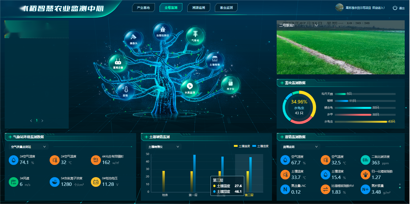 配置遠(yuǎn)程孢子捕捉儀1臺、物聯(lián)網(wǎng)蟲情測報燈1臺、風(fēng)吸式太陽能殺蟲燈20臺、水質(zhì)監(jiān)測站2套、空氣質(zhì)量監(jiān)測站1套、管式土壤墑情儀1套、作物多光譜苗情監(jiān)測1臺、槍機(jī)攝像頭15個、球機(jī)攝像頭10個