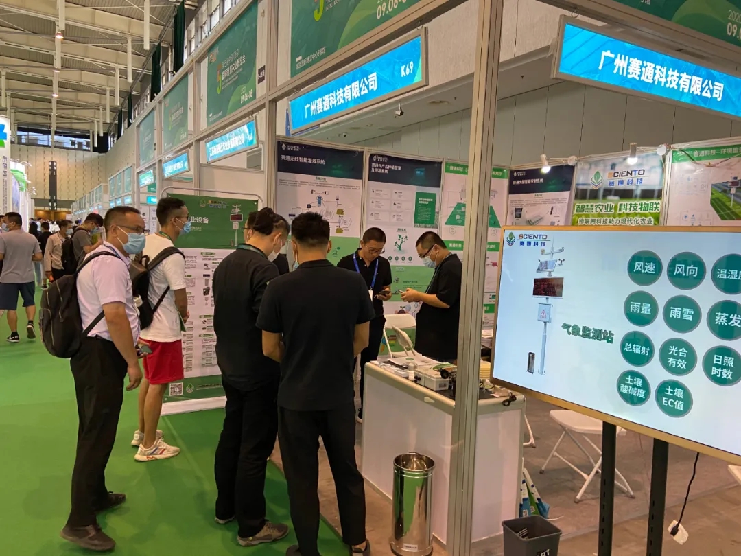 展會期間,賽通科技的展位重點展示了土壤墑情監測站、管式土壤墑情傳感器、水肥一體機、土壤酸堿度傳感器、風向風速傳感器、雨量傳感器等智能農業設備。賽通科技的業務經理為前來咨詢的客戶提供了專業的解答。