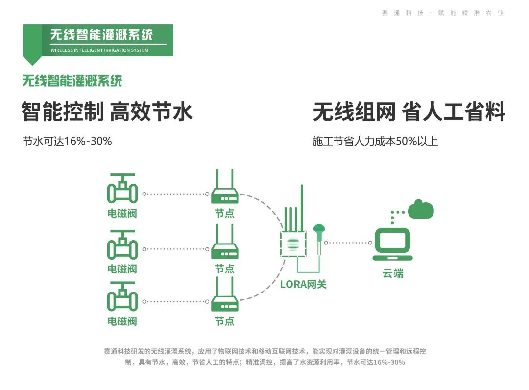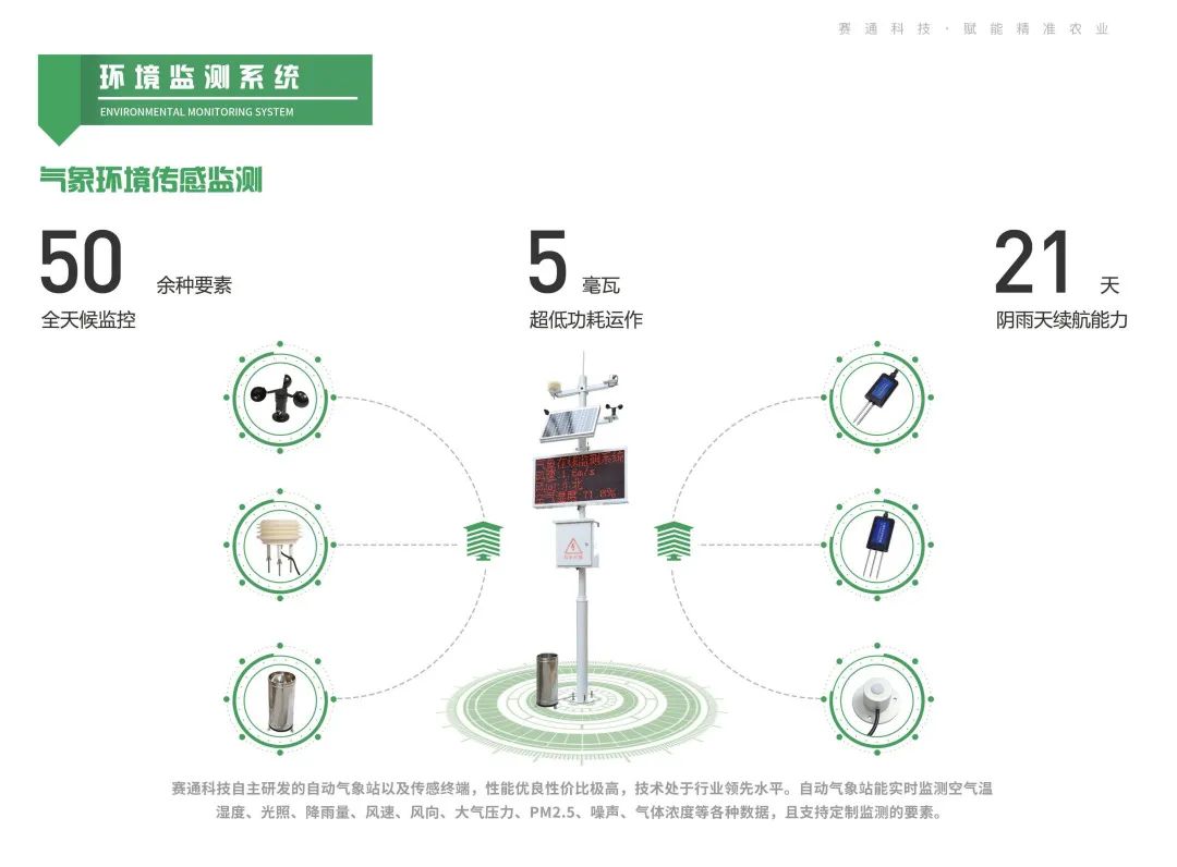 通過賽通科技氣象環境監測設備、水肥灌溉設備、蟲情測報設備、大棚控制設備等系列終端設備實施有效現場干預,以“精準定時、定位、定量控制”全方位助力各類農業生產場景的智慧化、數字化,控制生產成本與降低資源浪費,提高農業生產效益,實現農業可持續發展,賦能國家鄉村振興。