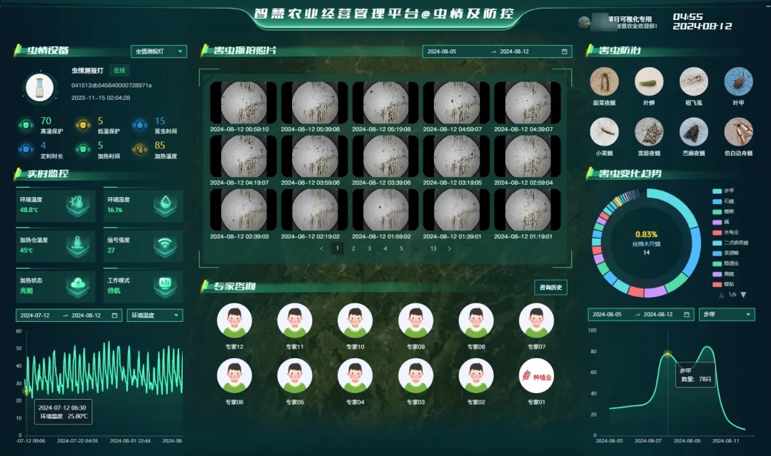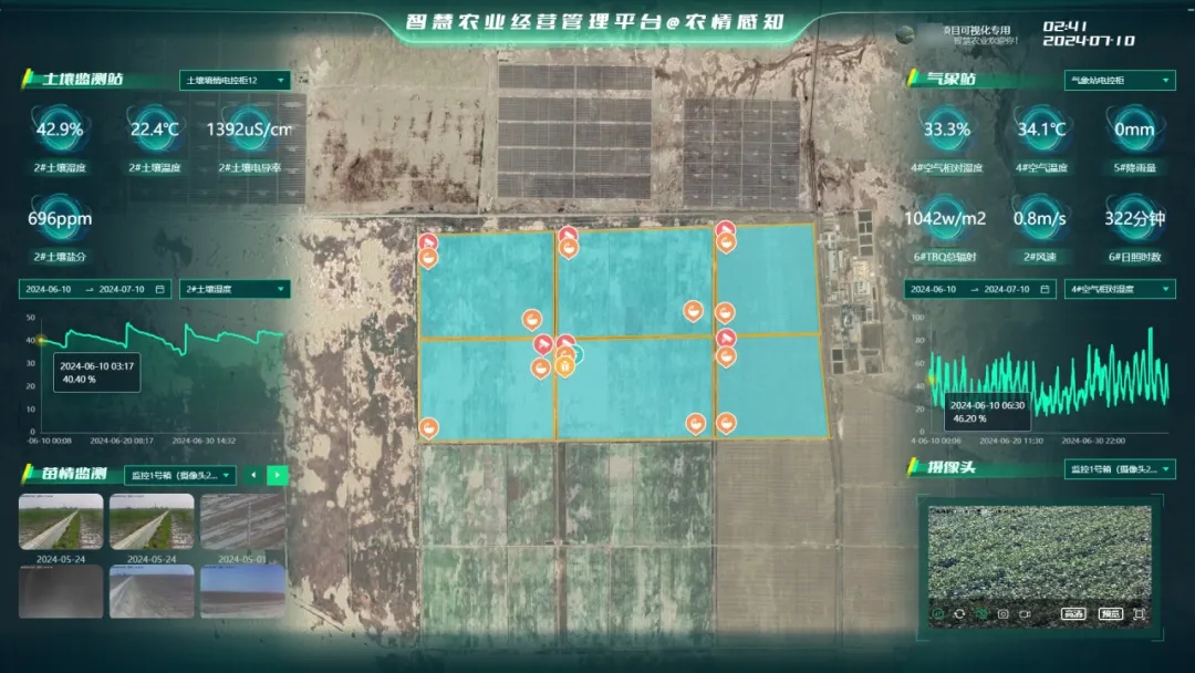 農業四情監測系統:由曉萬象®Q1氣象站、土壤墑情監測站、自動識別蟲情測報燈、視頻監控形成農業四情監測系統,為棉花整地、播種、打頂、脫葉、除蟲等農事提供數據依據。