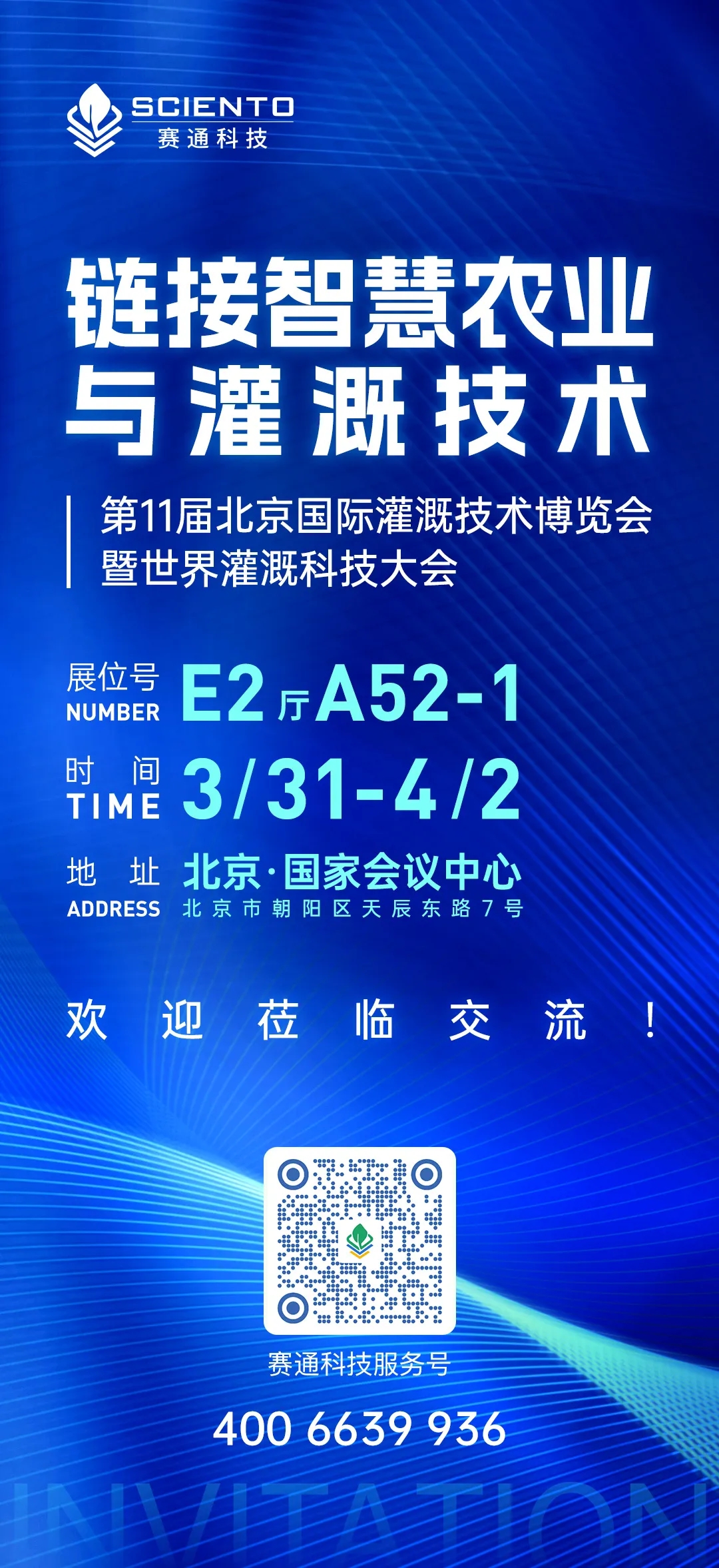 2025年3月31日-4月2日,第11屆北京國際灌溉技術(shù)博覽會暨世界灌溉科技大會將在北京國家會議中心盛大開幕,廣州賽通科技有限公司將攜最新技術(shù)與產(chǎn)品亮相E2廳A52-1展位,現(xiàn)誠邀您蒞臨現(xiàn)場,共同探討數(shù)字科技如何助力灌溉農(nóng)業(yè)高質(zhì)量發(fā)展,開啟無限可能。