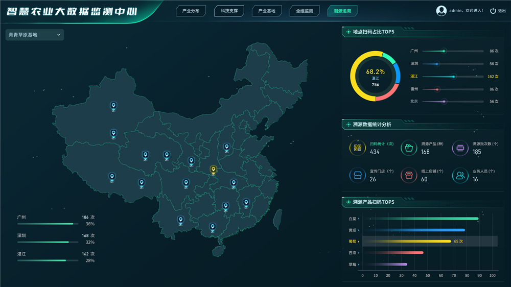 對產品進入流通銷售后的溯源掃碼占比、分布、品種進行可視化呈現,并生成詳細的統計分析數據。