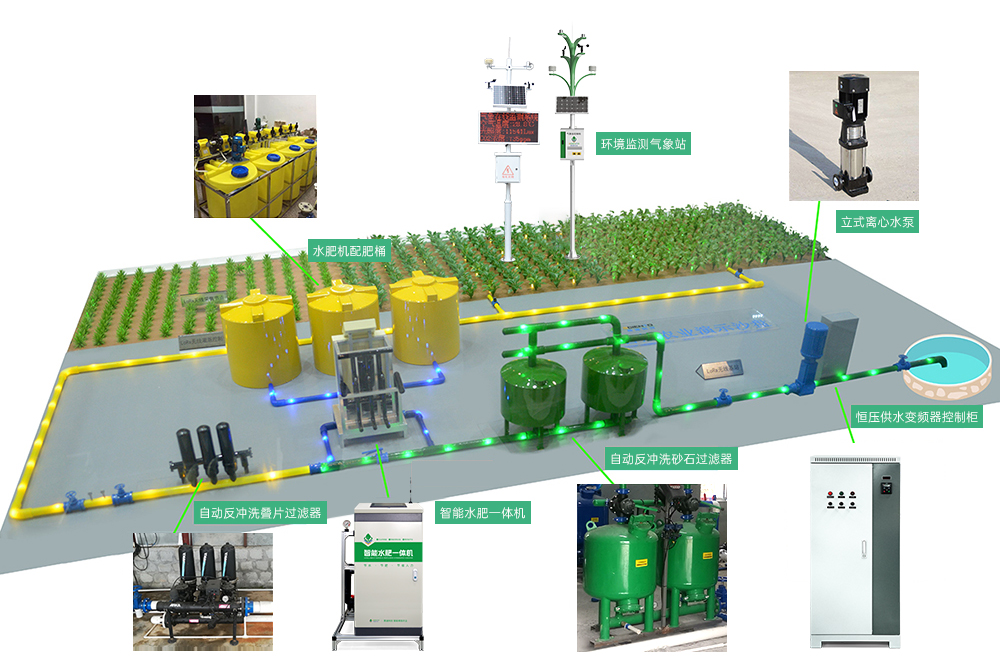 水肥一體化技術將灌溉與施肥融為一體,按土壤養分含量和作物種類的需肥規律特點,將可溶性固體或液體肥料,配兌成肥液;通過可控管道系統供水、供肥,使水肥相融后,由管道、噴槍或噴頭形成噴灌,均勻、定時、定量地噴灑在作物發育生長區域,使相應土壤始終保持疏松和適宜的含水量。還可根據不同作物的需肥特點、土壤環境和養分含量狀況、需肥規律情況進行不同生育期的需求設計,把水分、養分定時定量,按比例直接提供給作物。